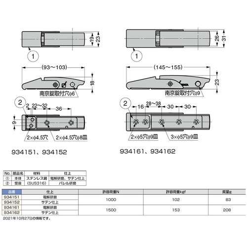 すっきりとした外観で、高級感のあるデザインです。取付ねじを隠しているため、いたずらを防止できます。掛代の調節が簡単にできます。船舶などに。 |