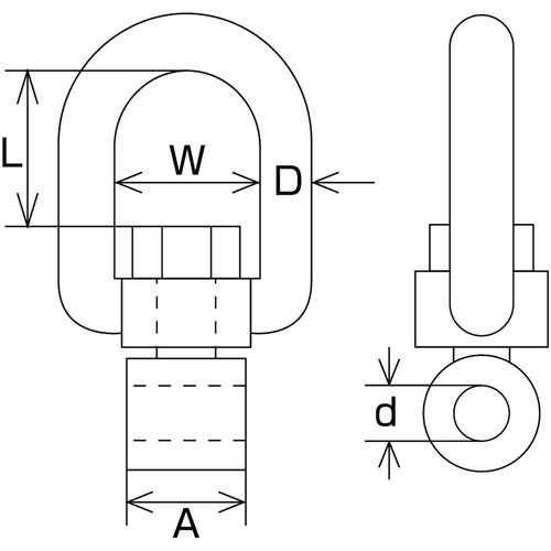 シャックルなどと組み合わせることにより、自在な方向へと動くスイベルとして使用できます。シャックルなどと組み合わせ、スイベル(よりとり)として使用します。 |