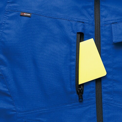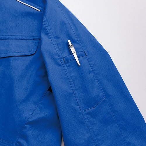 軽量ストレッチ生地を使用しています。高通気素材です。ストレッチ生地と立体カッティングで、腕・肩部分が動かしやすい作業着です。制電防止タイプです。作業全般に。