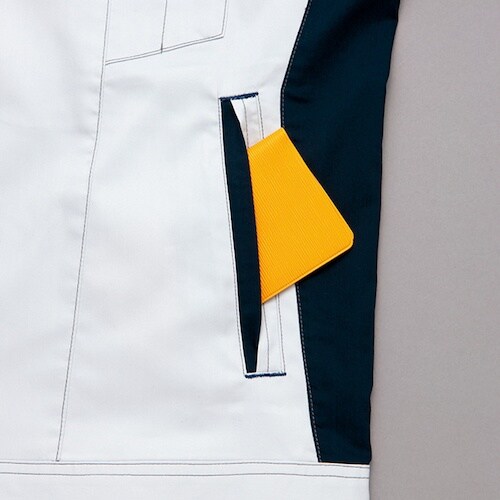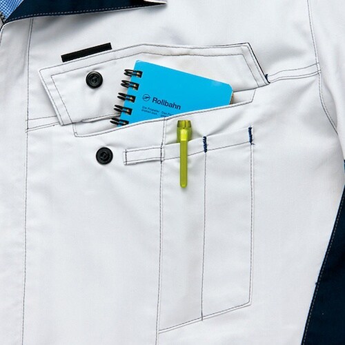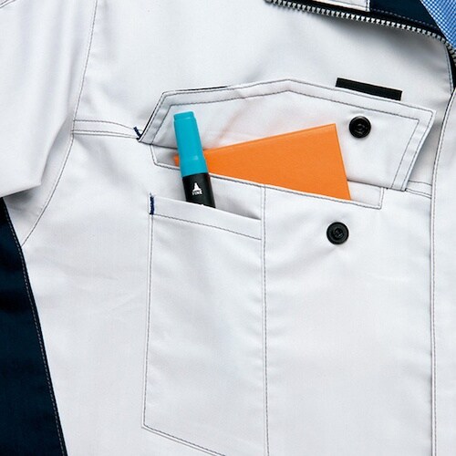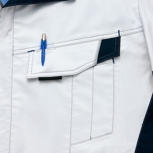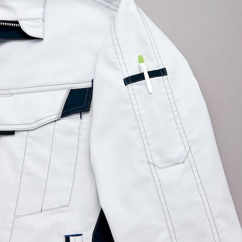 ストレッチ生地使用と立体カッティングで、腕・肩部分が動かしやすい作業着です。制電防止タイプです。作業全般に。