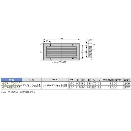 幅(mm):116 | 高さ(mm):260 | 外形寸法(mm):116×260 | 材質:アルミニウム合金 | 空気流通面積:12000 | 材質…