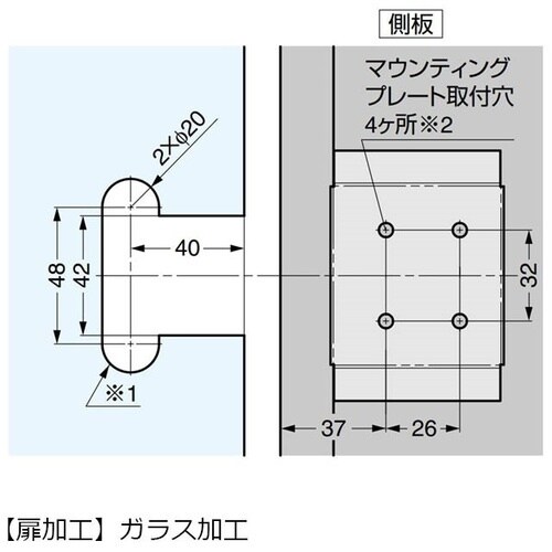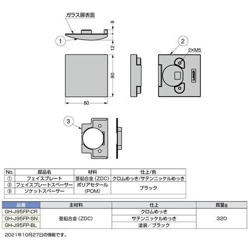 J95をガラス扉に取り付ける際に使用するフェイスプレートです。 |