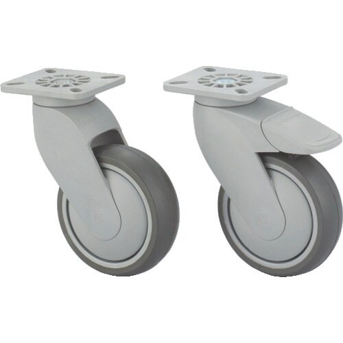 滑らかな回転と耐久性をかね備え、走行音も静かです。シンプルな形状で、手入れが簡単です。床面などにキャスターの車輪跡を残しません。1つのブレーキ操作により、車輪ブレーキと旋回ロックが同時にかかります。 |