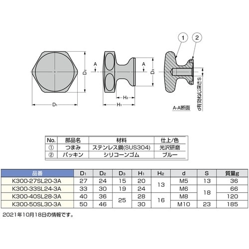 スガツネ工業 SUGATSUNE (100045801)K300−33SL24−3A/ステンレス鋼製ハイジェニックつまみ K30033SL243A 1個 A02V-1884