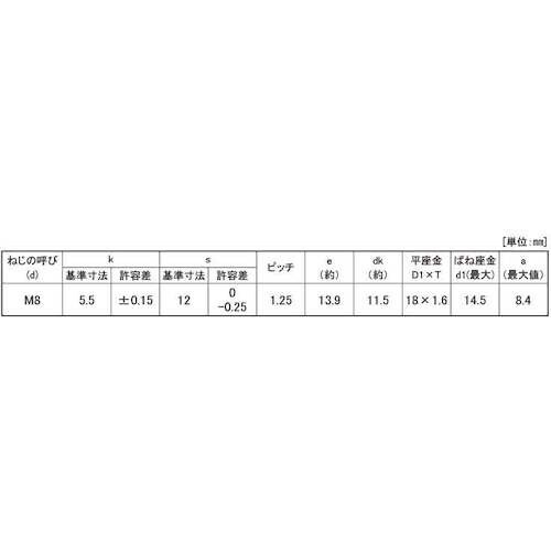 ねじ長さ(mm):20 | ねじ径(mm):M8 | 材質・仕上げ:鉄(または標準) | 単位:1箱(120本)