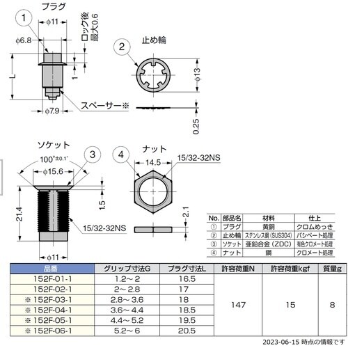 SUGATSUNE (120013712)152F−04−1/カムロックファスナー 152F041 1個