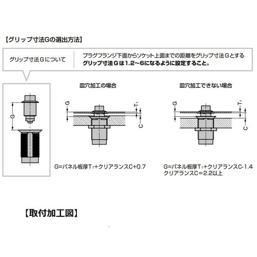 ロックおよびロック解除ともに、プラグの頭を押すだけのワンタッチ操作です。ロック時にプラグの頭が誤解除防止のためフラットになります。カムでロックしているため、振動で外れにくい構造です。 |