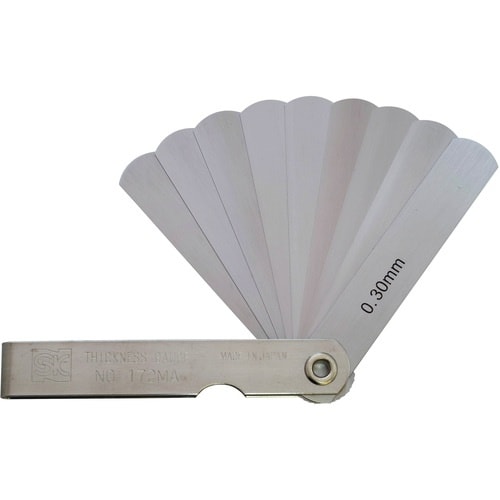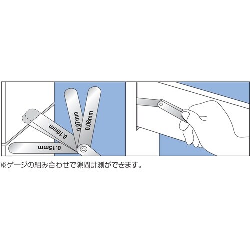 防錆剤に油を使用していないため、軽く拭き取ってご使用になれます。測定器では測りづらい二平面間の微細な隙間に差し込むことにより正確に検査できます。 |