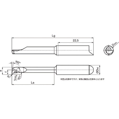 接続径DCON(mm):6 | 勝手:右 | R(mm):0.1 | W1(°):47 | W2(°):8 | f(mm):2.7 | a(mm):5…