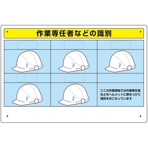 ヘルタイの色で作業専任者を確認できる標識です。工事現場への設置に。 |