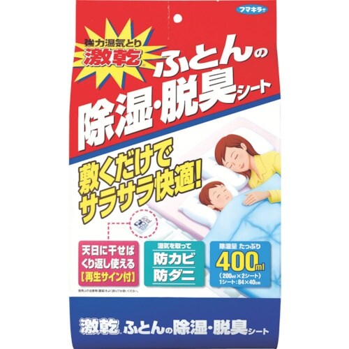 ふとんの下に敷くだけで除湿・脱臭・防カビ効果があります。ダニの繁殖も防ぎます。天日干しによる再生で1年間繰り返し使用可能です。除湿剤に。 |