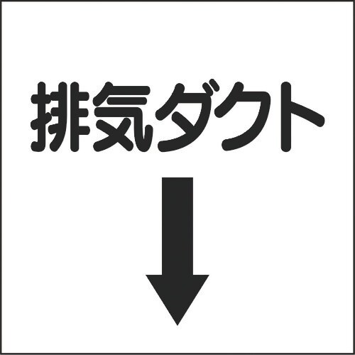 表示内容:下矢印 排気ダクト | 取付仕様:ステッカー | 縦(mm):250 | 横(mm):250 | 厚さ(mm):0.08 | その他仕様:ダ…