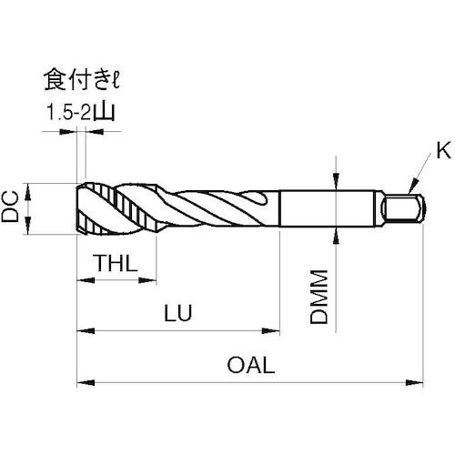 食い付き部の短い、ショートチャンファータイプです。材質が高級バナジウム系ハイス(HSS−E)のため広い範囲の被削材に適用できます。