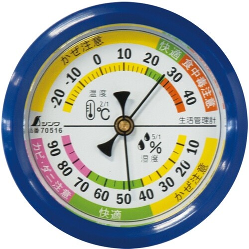 シンワ測定 シンワ 温湿度計F−4S生活管理丸型6.5cmブルー 70516 1個 A02X-3421