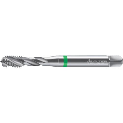 止まり穴用スパイラルタップです。被削材:鋼、鋳鉄、非鉄金属。ねじ切り加工。