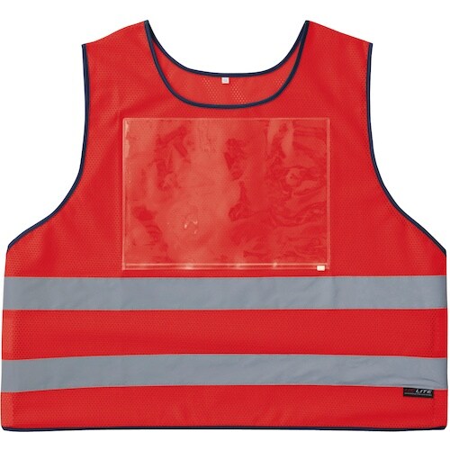 色:レッド | サイズ:L | 本体:ポリエステル100% | 反射材:高輝度ガラスビーズ | クリアポケット:塩化ビニール | 単位:1着