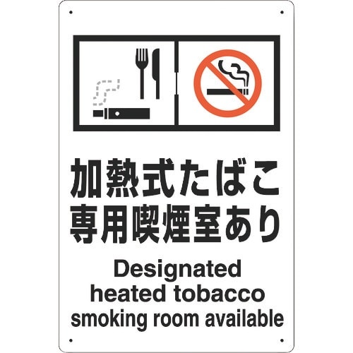 表示内容:加熱式たばこ専用喫煙室あり Designated heated tobacco smoking room available | 取付仕様:…