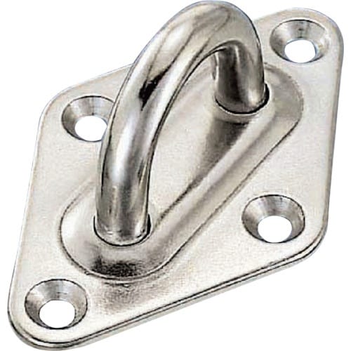 形状が菱形です。4箇所を留めるタイプです。壁面・床面・柱などに設置し、チェーン・ワイヤ・ロープの端末金具として。