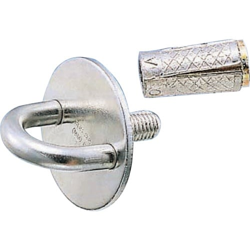 アンカープラグが付いています。座部分が円形です。壁面・床面・柱等に設置し、チェーンなどの端末金具として。 |