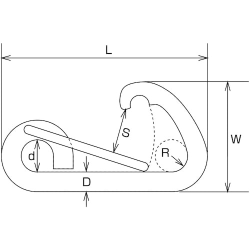 荷重をかけた際長辺に荷重がかかるため、フックに負担がかかりにくい構造になっています。チェーン・ワイヤー・ロープ等の連結金具として、また端末の金具のジョイントに。 |