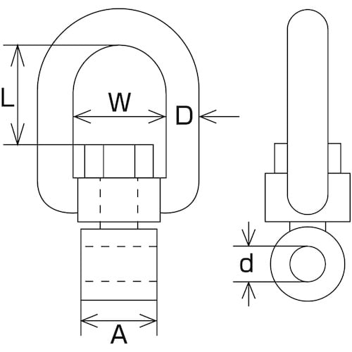 シャックルなどと組み合わせることにより、自在な方向へと動くスイベルとして使用できます。シャックルと組み合わせ、スイベル(よりとり)として。 |