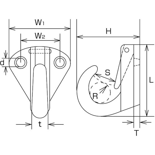 使用荷重(kN):0.15 | H(mm):34 | L(mm):41 | R(mm):4.5 | S(mm):10 | W1(mm):34 | W2…