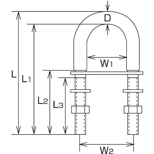 U型の形に曲げて使用することにより、壁面や床面にパイプなどを固定することができます。 |