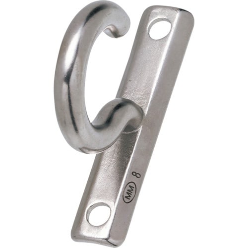 背面がVの形状になっているので曲面にもフィットします。背面に座ぐり付です。ブラインドナットの使用を想定しています。(別途ご用意ください。壁面・床面・柱などに設置し、物掛けとして。 |
