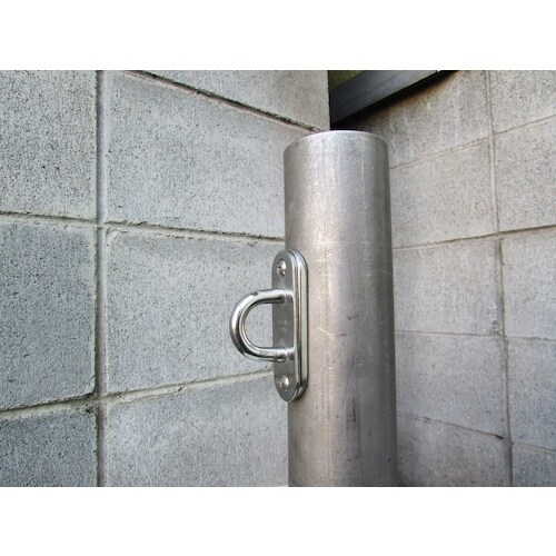 パッドアイにピッタリサイズの裏板です。裏板を挟むことで、PDPDROPDを曲面(ポール等)へ取り付けることができます。接地面の補強としても。 |