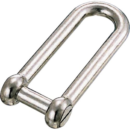 シャックル部が長く用途が広がります。シャックルのピンの出っ張り(摘む部分)を除いているので、ロープなどがひっかかりません。チェーン・ワイヤ・ロープ等の連結金具として、また端末の金具のジョイントに。