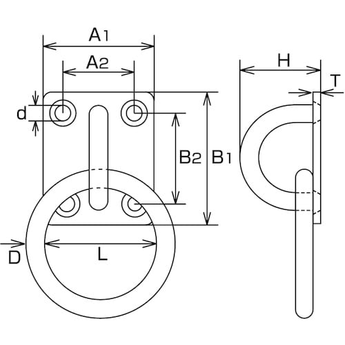使用荷重(kN):0.59 | D(mm):9 | L(mm):50 | H(mm):37 | T(mm):4 | A1(mm):42 | A2(mm…