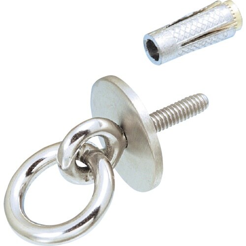 丸カンが付いているので、太いロープ等を通すのが容易です。壁面・床面・柱等に設置し、チェーン・ワイヤー・ロープの端末金具として。