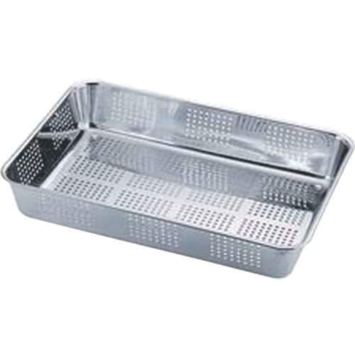 特長底からも蒸気や冷気が入りやすくなっていますので水切だけでなく、蒸し物や冷却用バットにも最適です。耐食性ステンレス(18−8と同等)です。素材が硬く丈夫です。 |