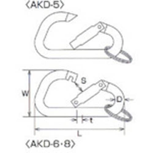 使用荷重(kN):0.10 | D(mm):5 | L(mm):50 | S(mm):9 | W(mm):27 | t(mm):4 | 材質:本体=ア…