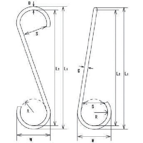 使用荷重(kN):0.15 | D(mm):6 | L1(mm):250 | L2(mm):238 | S(mm):40 | W(mm):54 | R…