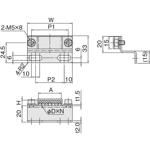 対応チューブ(φ×本):4×10(2段)、8×5、10×4 | A(mm):41 | W(mm):67 | P1(mm):57 | P2(mm):47…
