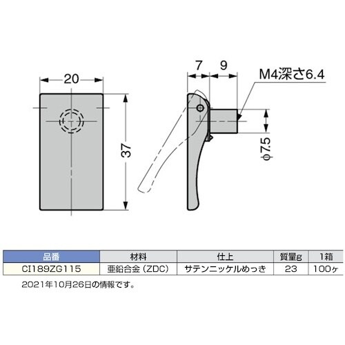 その他仕様:サテンニッケルめっき | 材質・仕上げ:亜鉛合金(ZDC) | セット付属内容:十字穴付座付トラス小ねじM4×25 | 単位:1個