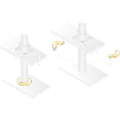ウレタン製のダンパーです。当社製スタンダードセパレートカラーに合わせたサイズ設計で、両面テープによりセットカラーへの固定が可能です。衝突などによる衝撃音を緩和します。
