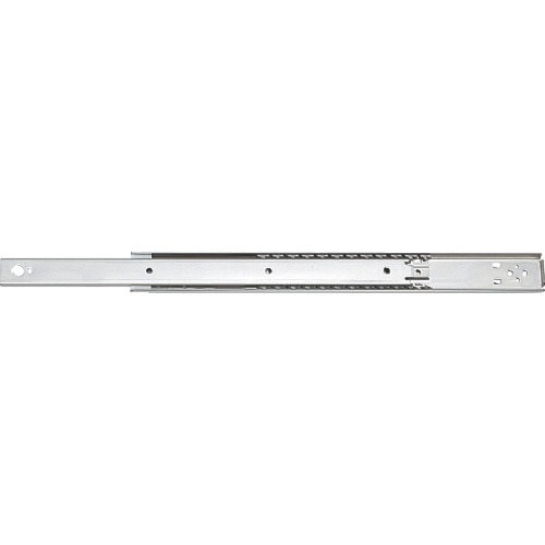 3/4スライドの2段引スライドレールです。レールを全開にすると、摩擦抵抗によりブレーキがかかり止まります。さらに強く引くとレールを取り外せます。