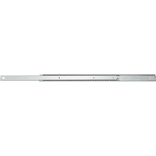 3/4スライドの2段引スライドレールです。レールを全開にすると、摩擦抵抗によりブレーキがかかり止まります。さらに強く引くとレールを取り外せます。 |