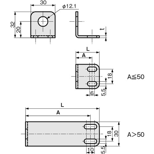 近接センサ(ネジ型)を取り付けるためのブラケットです。ネジ型 M5、M8、M12、M18、M30サイズに対応です。L型形状です。近接センサのスライド量(オフセット量)をお選びいただけます。