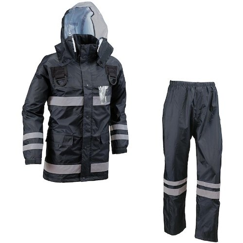 フルハーネス対応レインウェアです。雨天の作業全般に。
