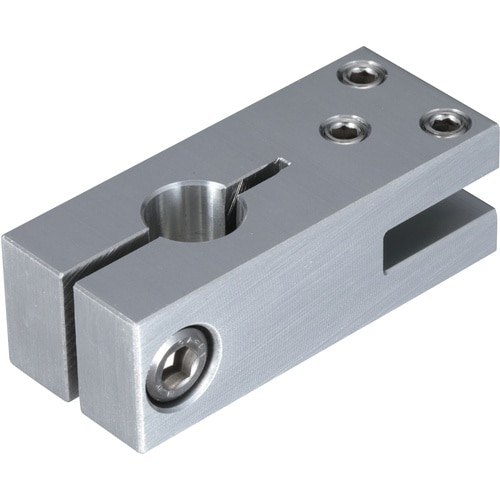 当社シャフトと組み合わせが可能な取付ベースです。スリット構造のためシャフトに傷を付けることなく締め付けが可能です。コンベアのアングル材などにクランプ可能、相手側の加工も不要ですです。 |