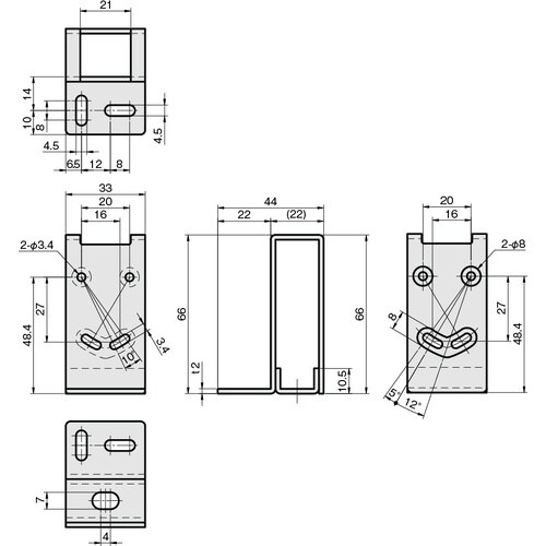 レーザーセンサを取り付けるためのブラケットです。オムロン社E3NC−SH100/250(H)などに対応です。センサを保護するガード付仕様です。フルガードタイプです。 |