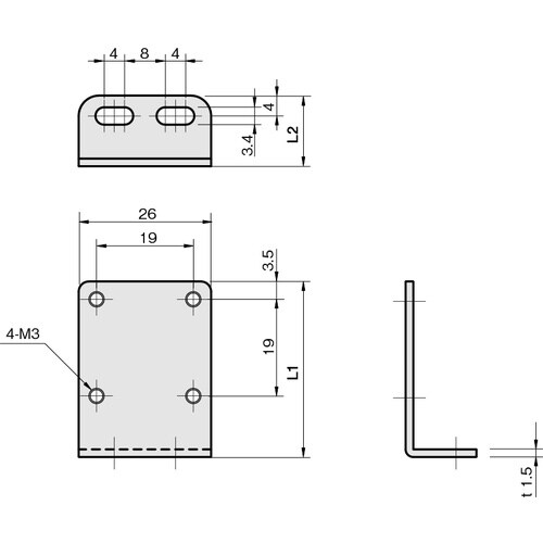 フォトマイクロセンサを取り付けるためのブラケットです。オムロン社EE−SX47/67/97シリーズ、パナソニック社PM−45/65シリーズに対応です。