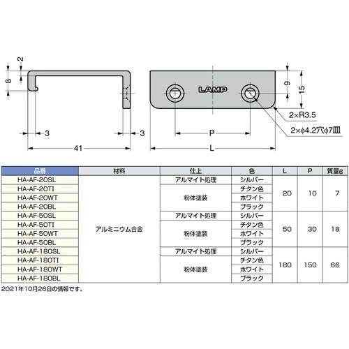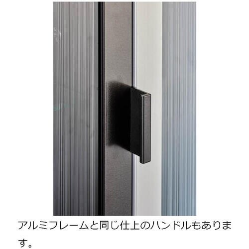 シンプルなデザインのハンドルです。オプション品のブラケット HA−AF−BKT型を併用し、フレームに加工することで隠し丁番Air用アルミフレームに取付可能です。 |