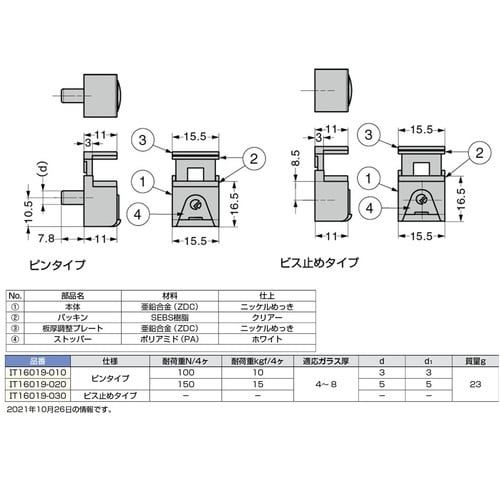 スガツネ工業 SUGATSUNE (120022992)IT16019−020/ガラス用棚受 IT16019020 1個 A032-3088