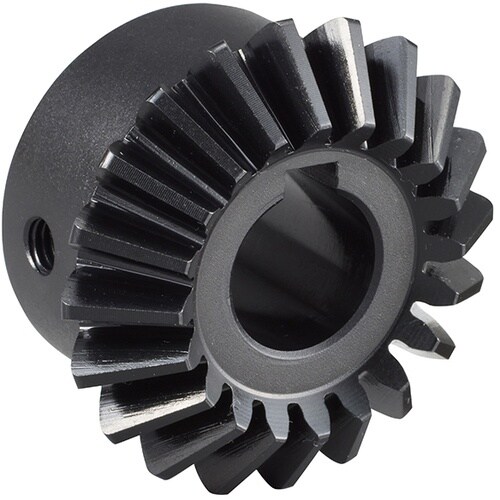 強度・耐摩耗性が高く、軸穴・キー溝・ねじ穴加工を行った完成品です。あらゆる機械装置で、軸の回転方向を90°変える時に使用。