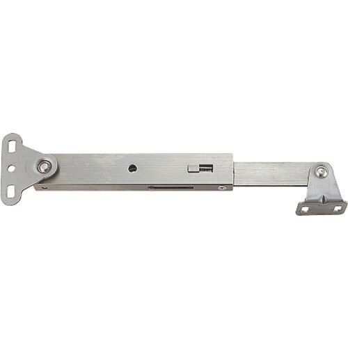 扉を開状態で保持するステーです。開時保持位置から全開位置まで扉を持ち上げると解除します。作動の安全性を確保するために、ドライバーやピンなどをロック穴に通してステーをロックできます。 |