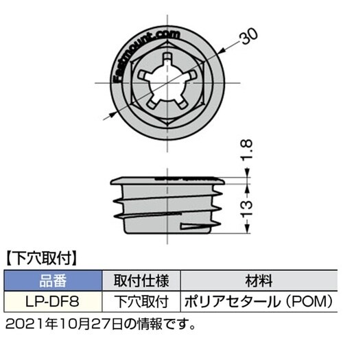 Φ25下穴取付です。積層合板・MDF・パーティクルボード用です。 |